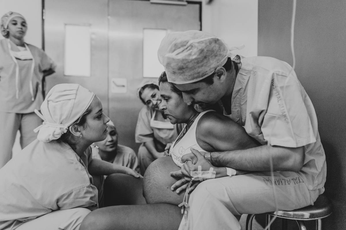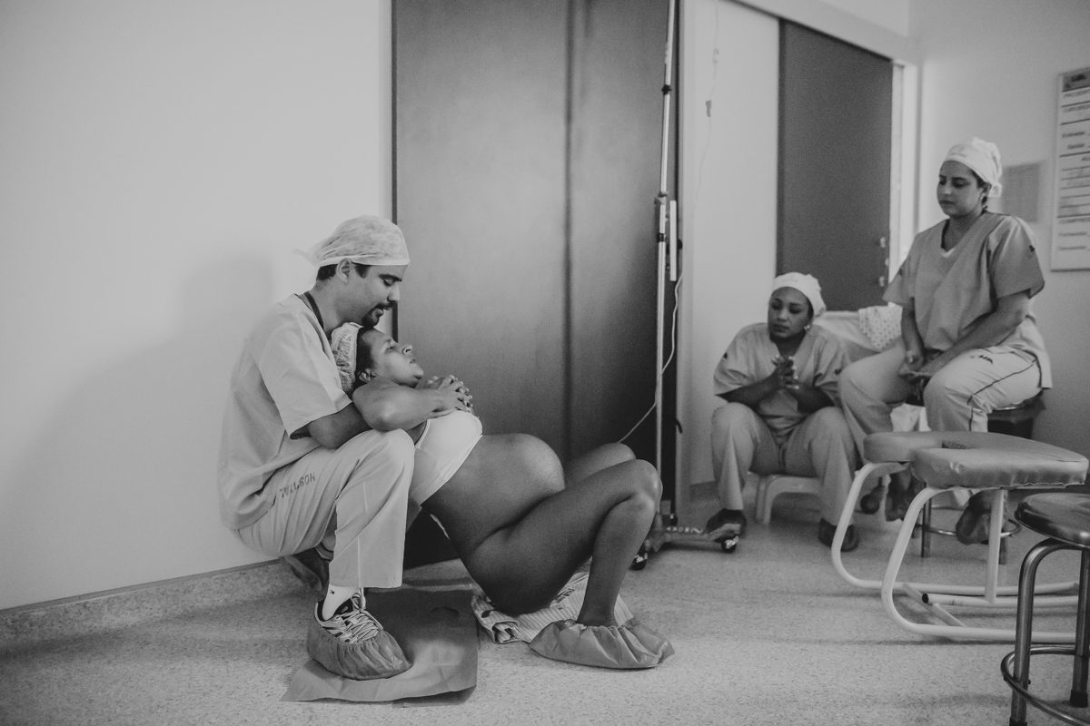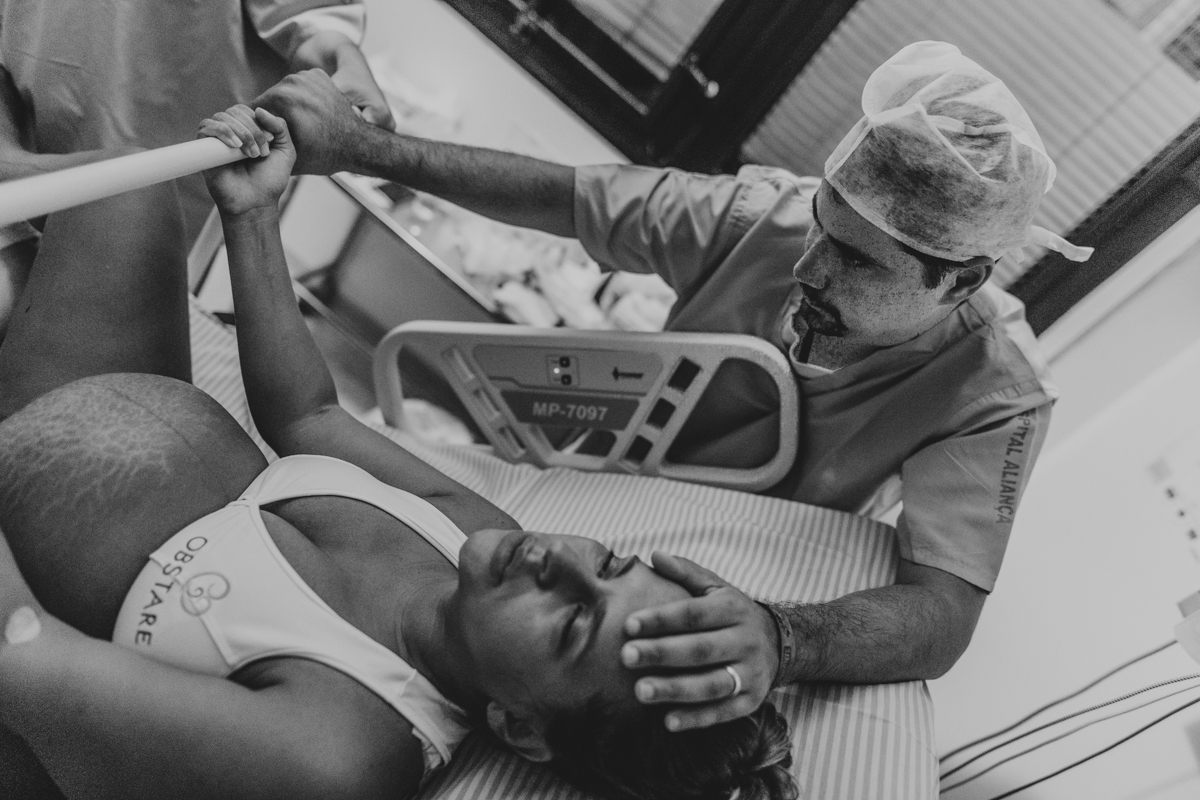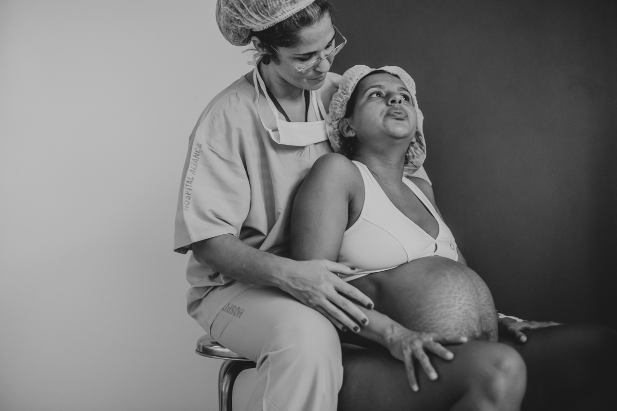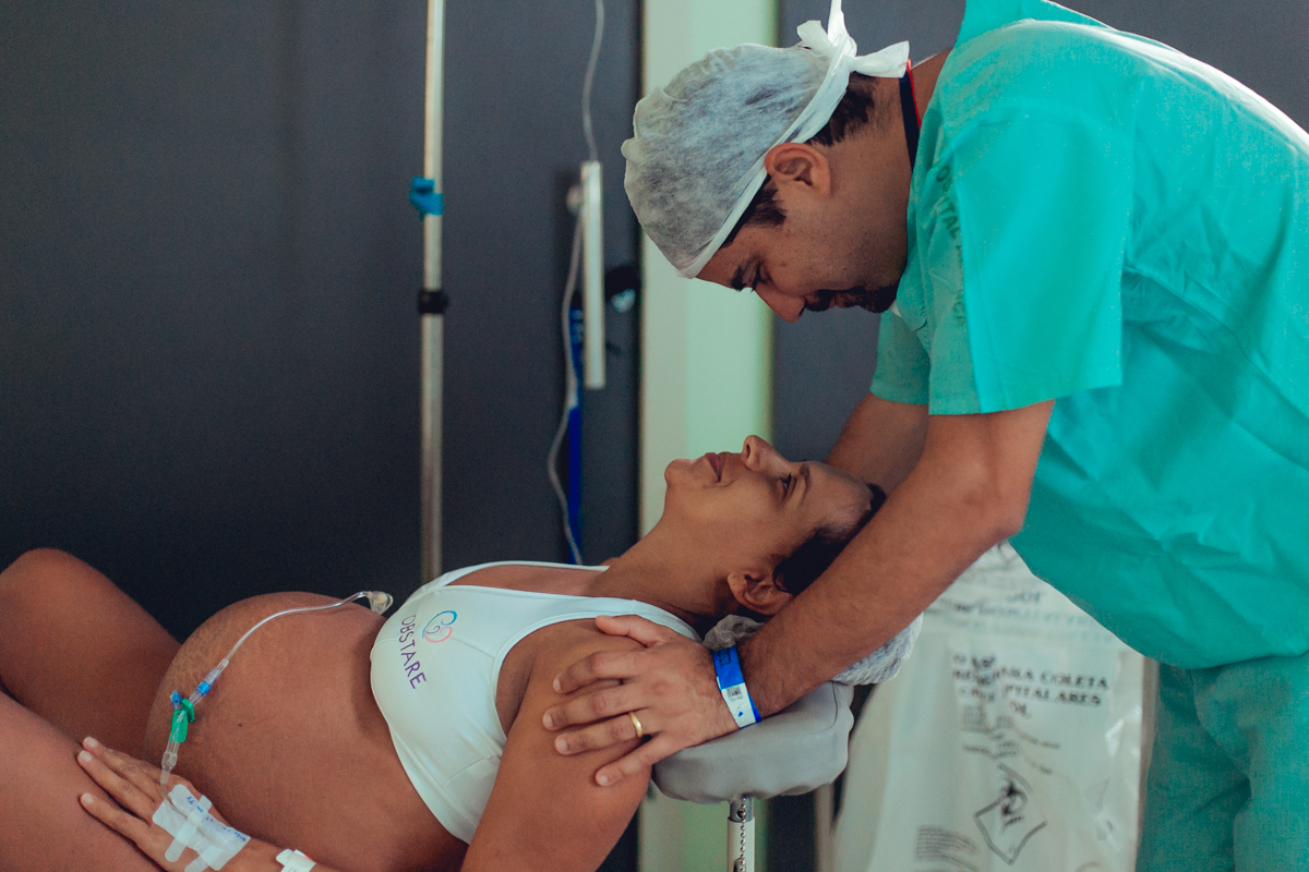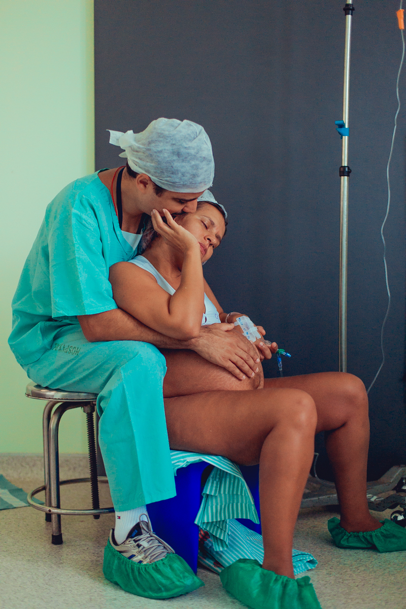 pai troca carinho com gestante durante parto humanizado em salvador