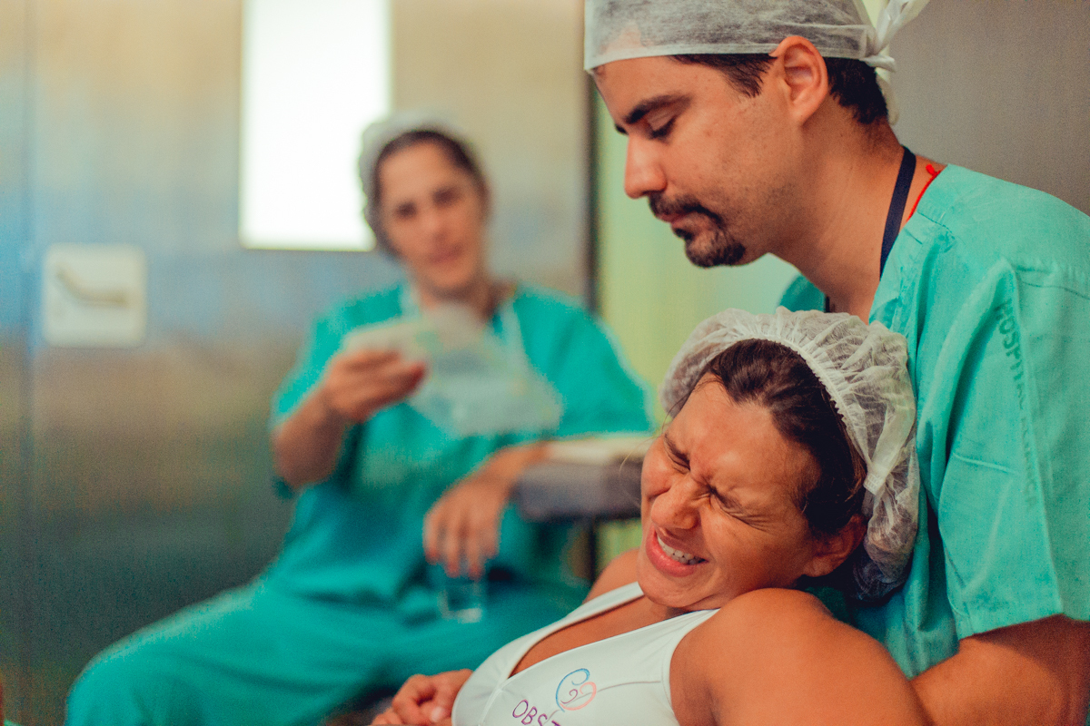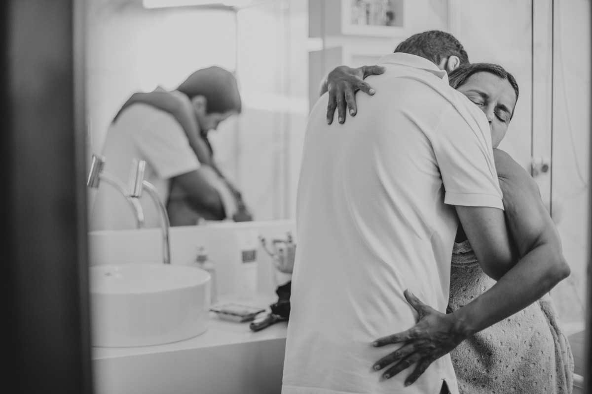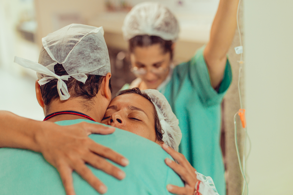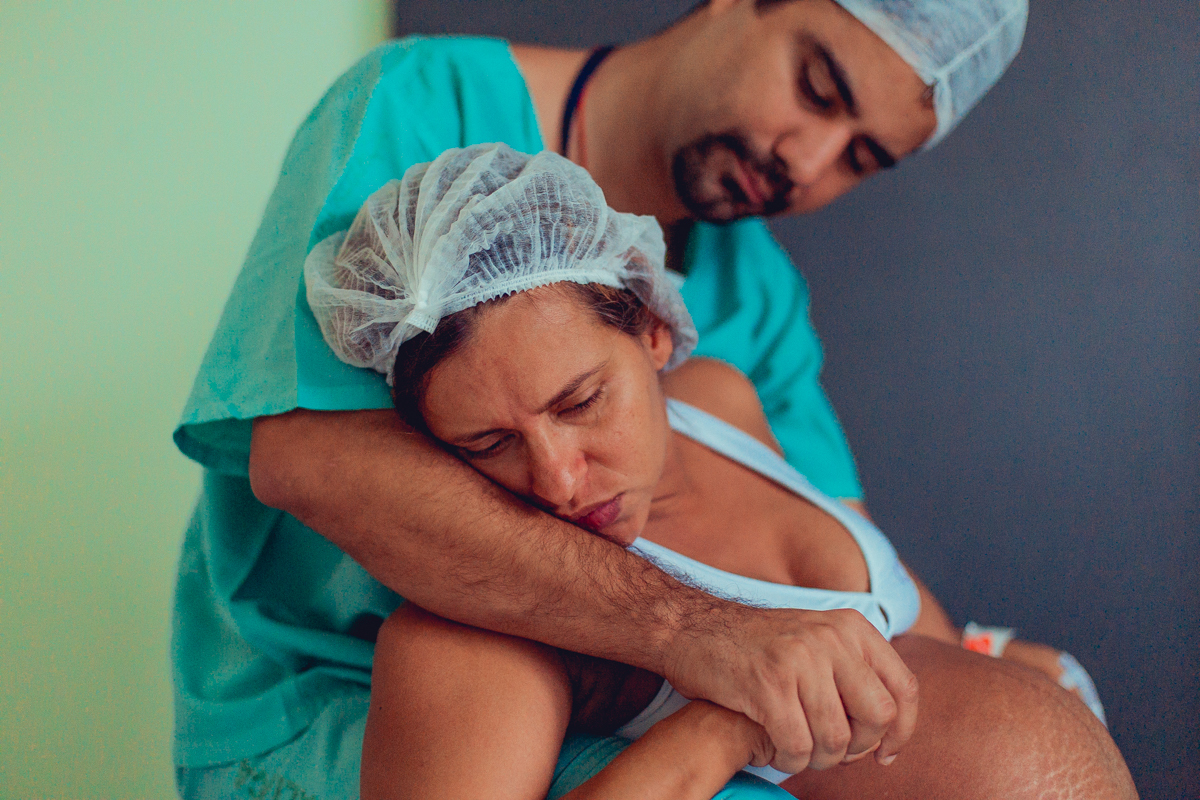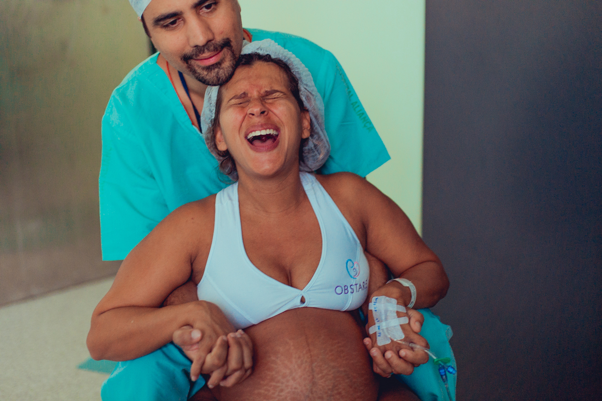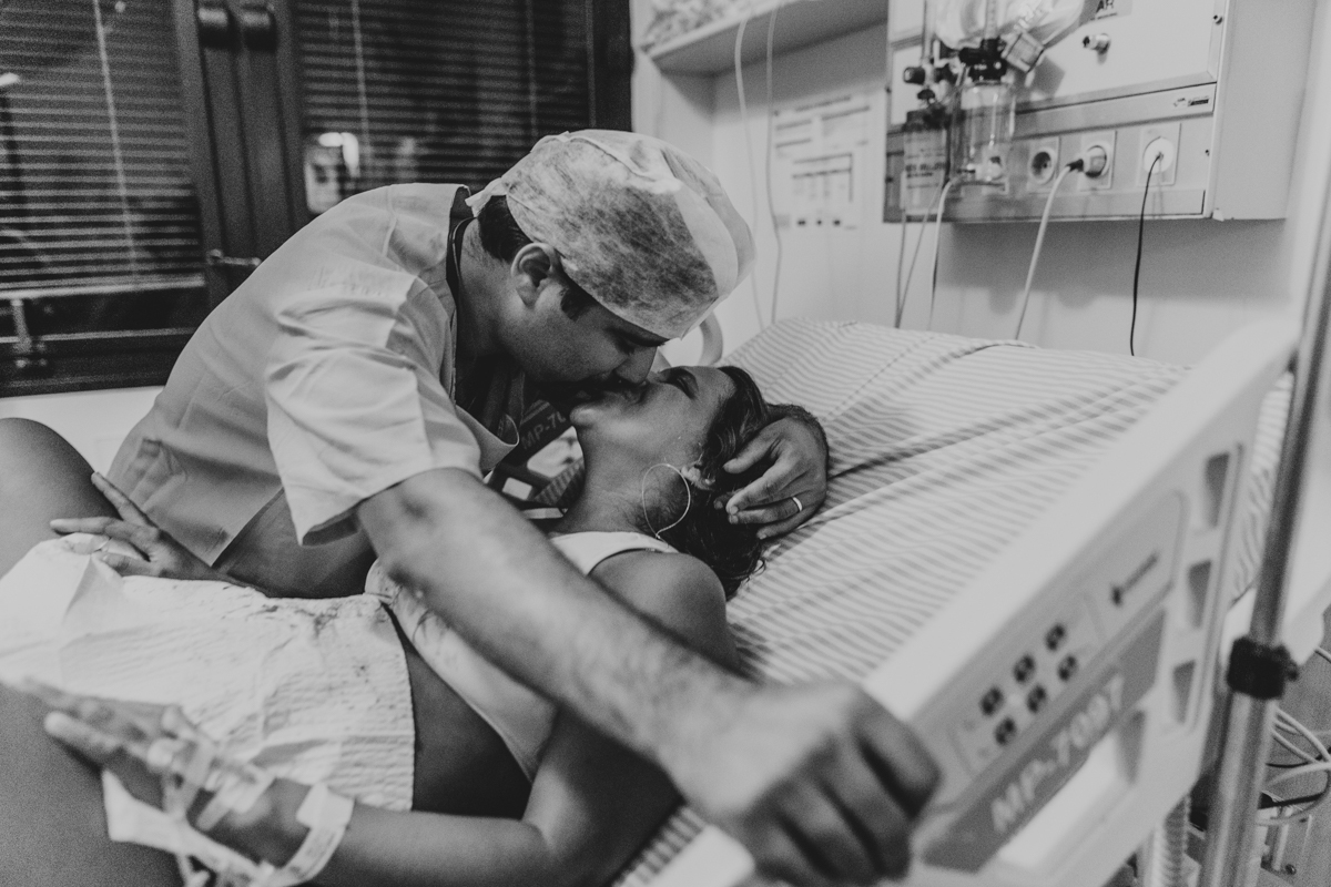 pai troca carinho com gestante durante parto humanizado em salvador