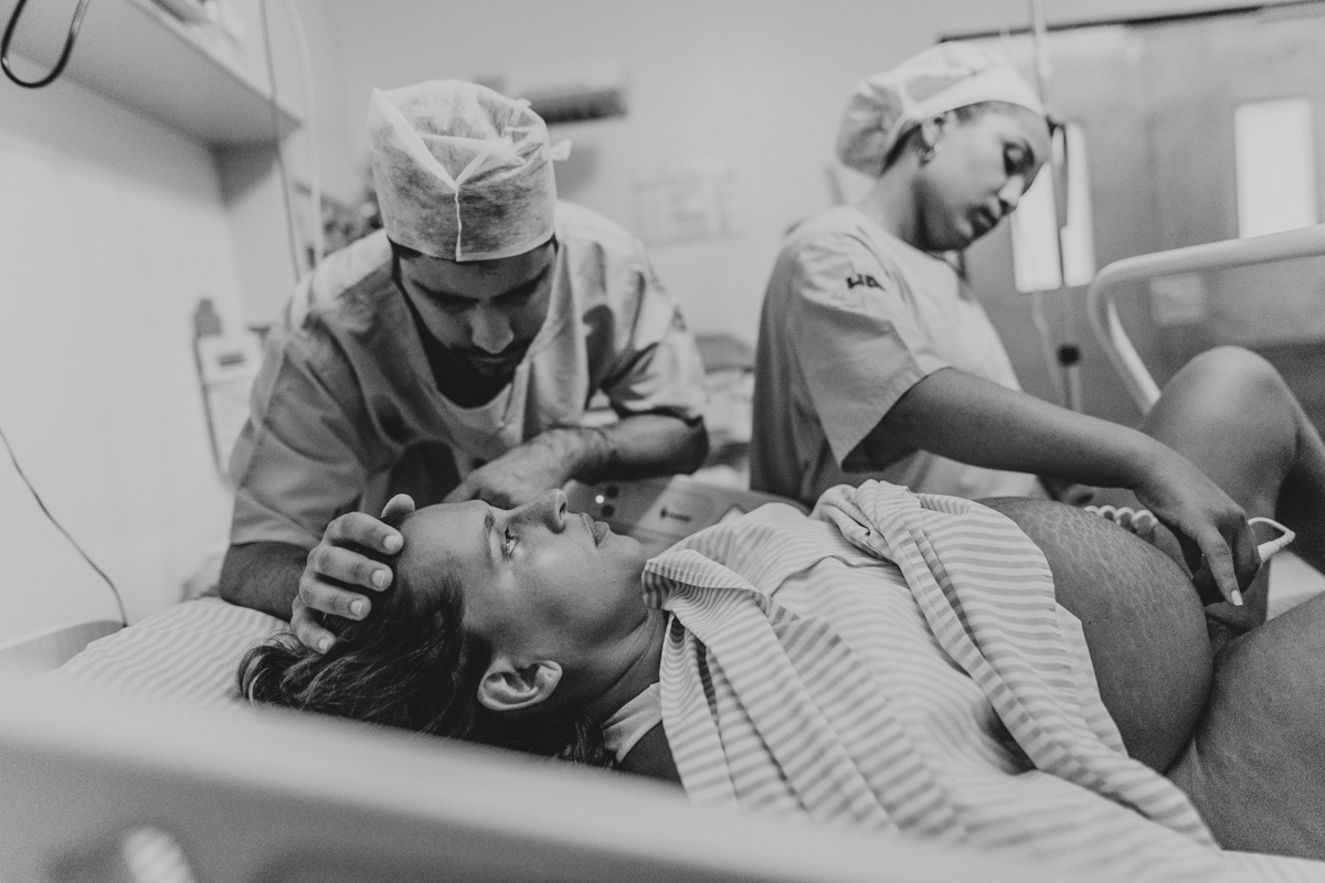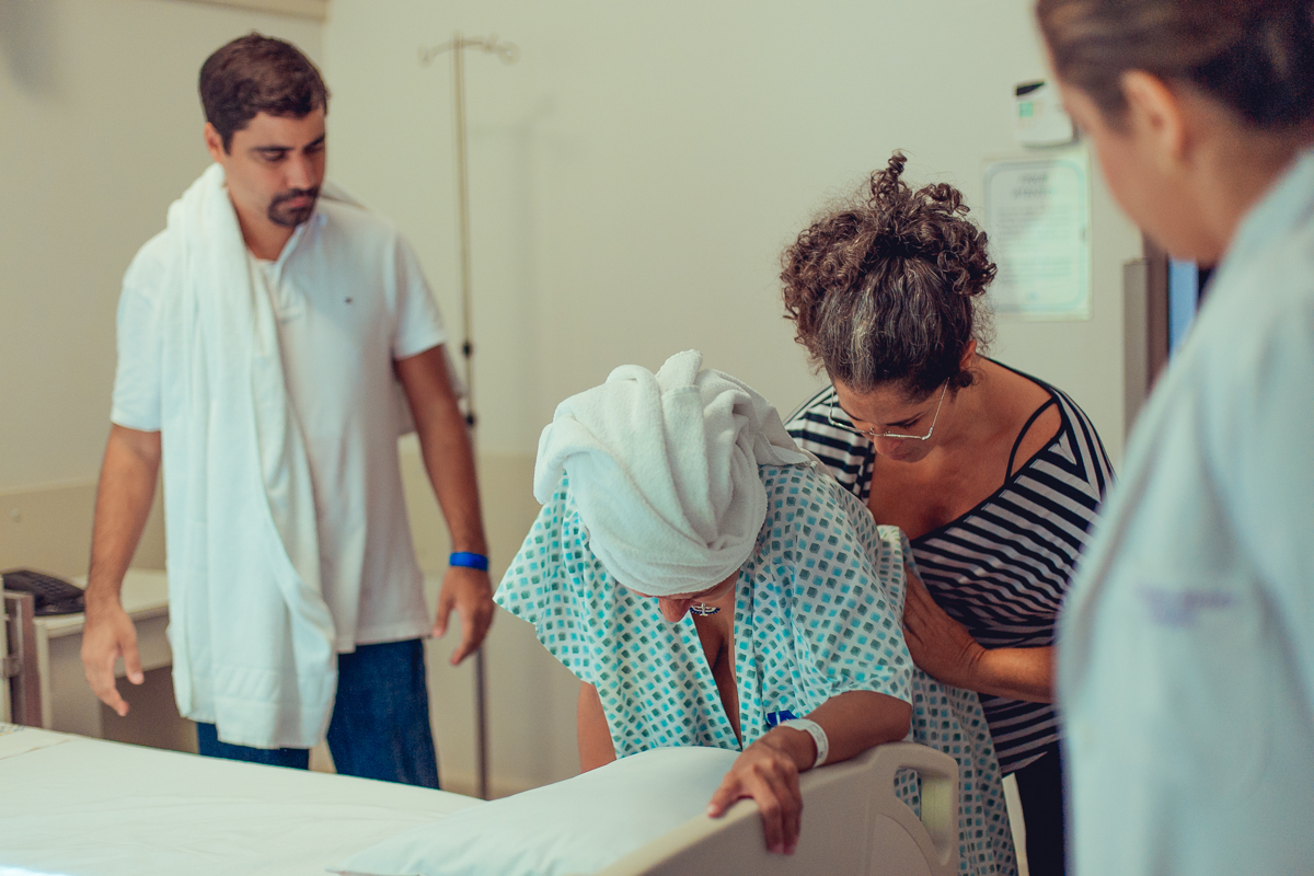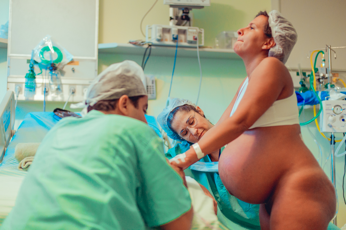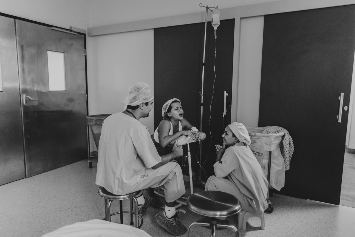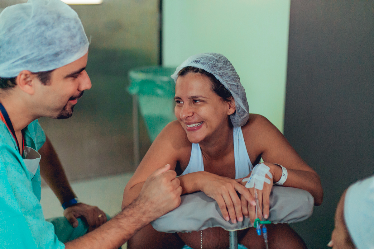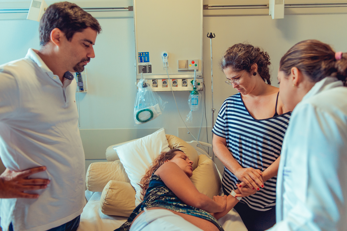 pai troca carinho com gestante durante parto humanizado em salvador