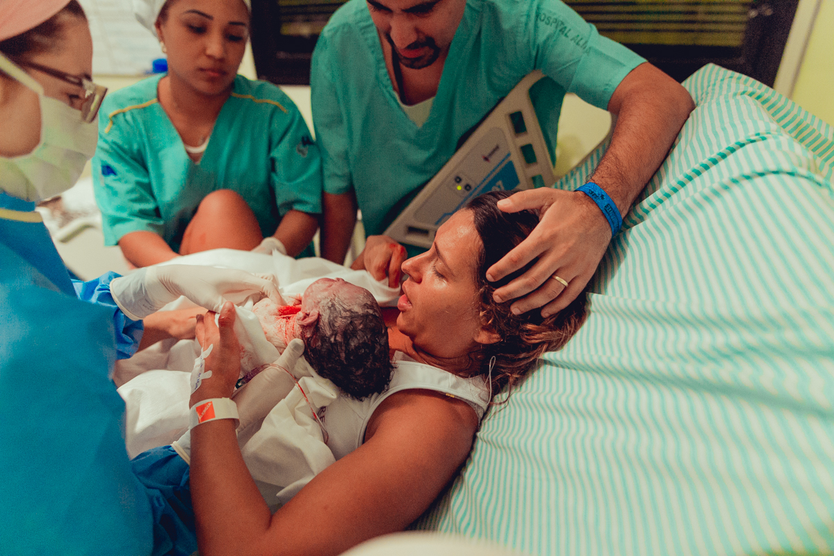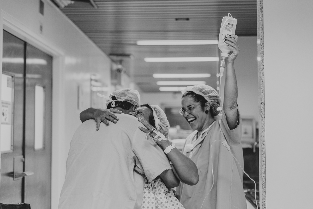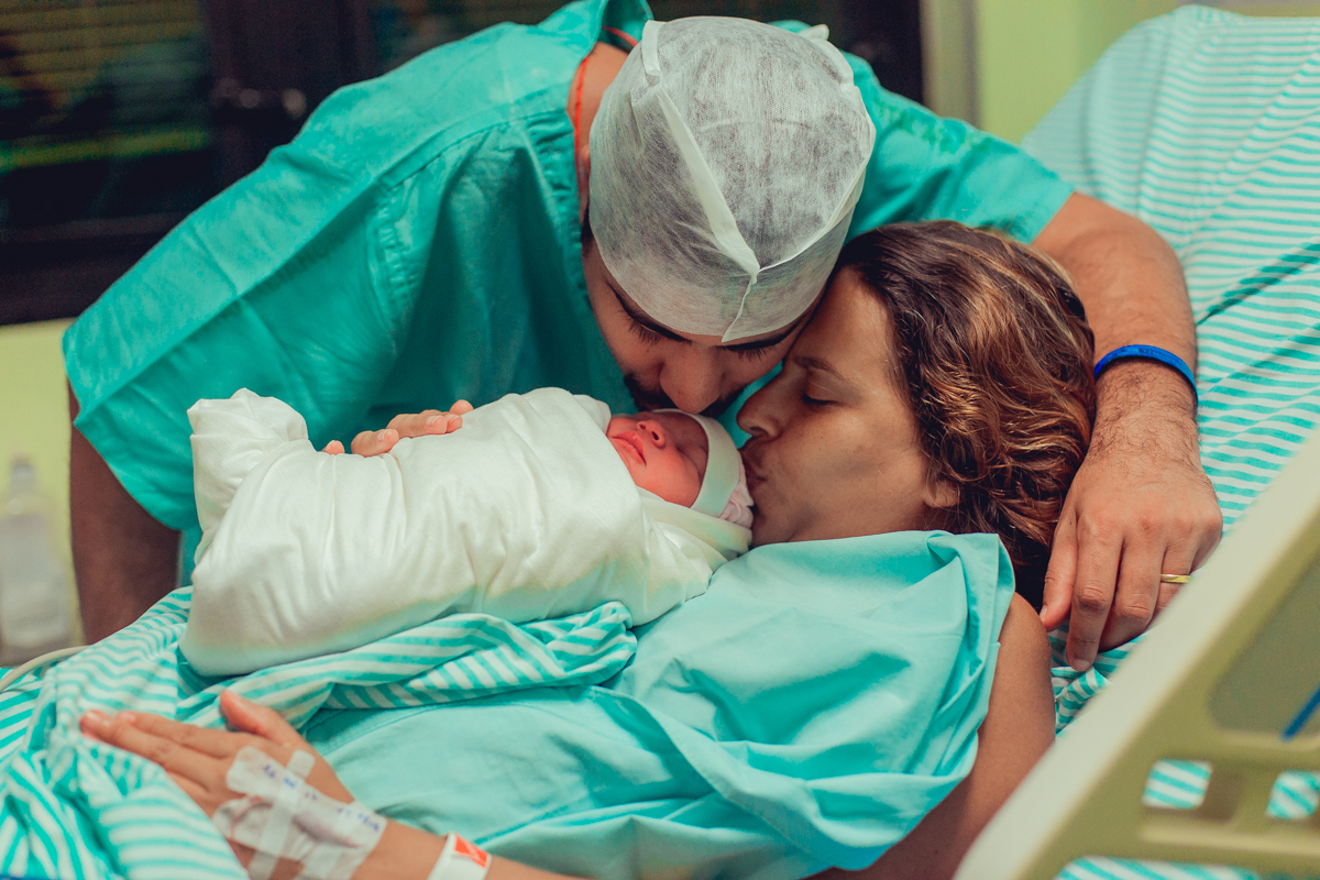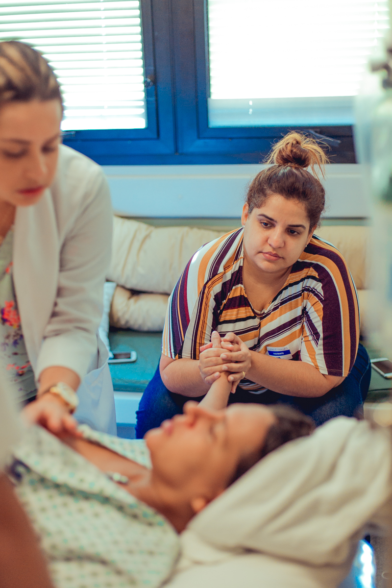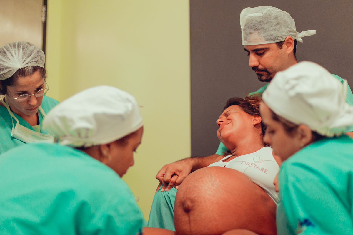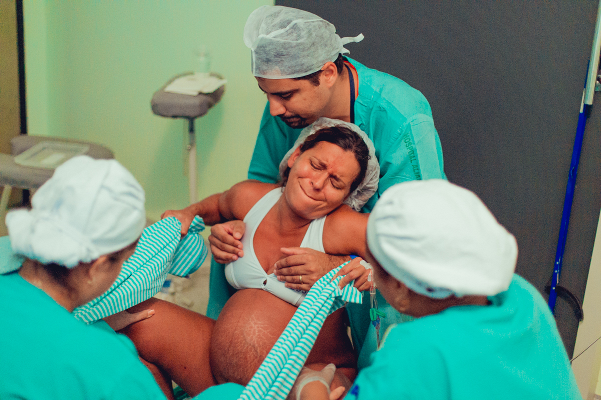 pai troca carinho com gestante durante parto humanizado em salvador