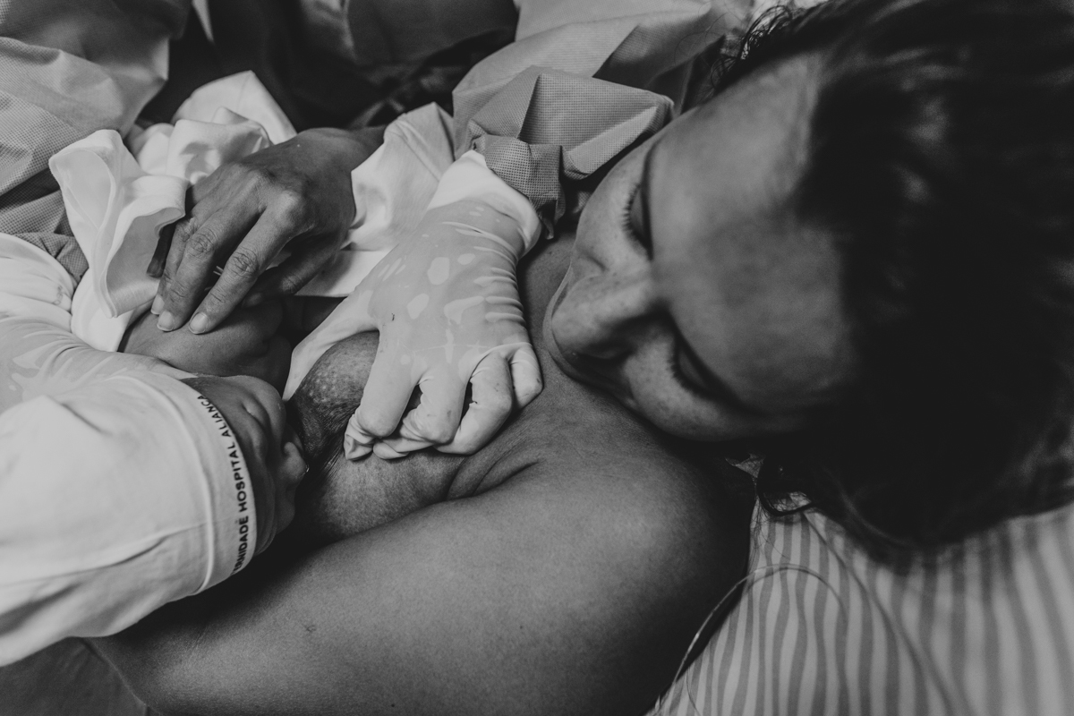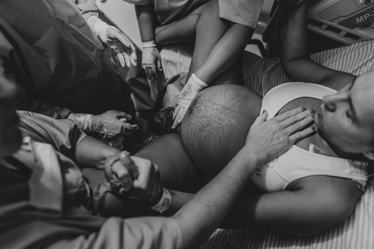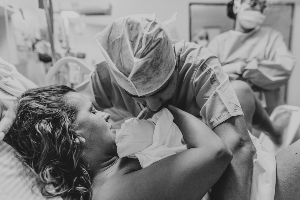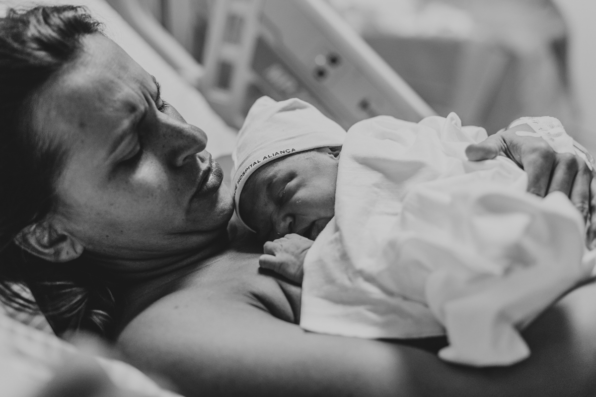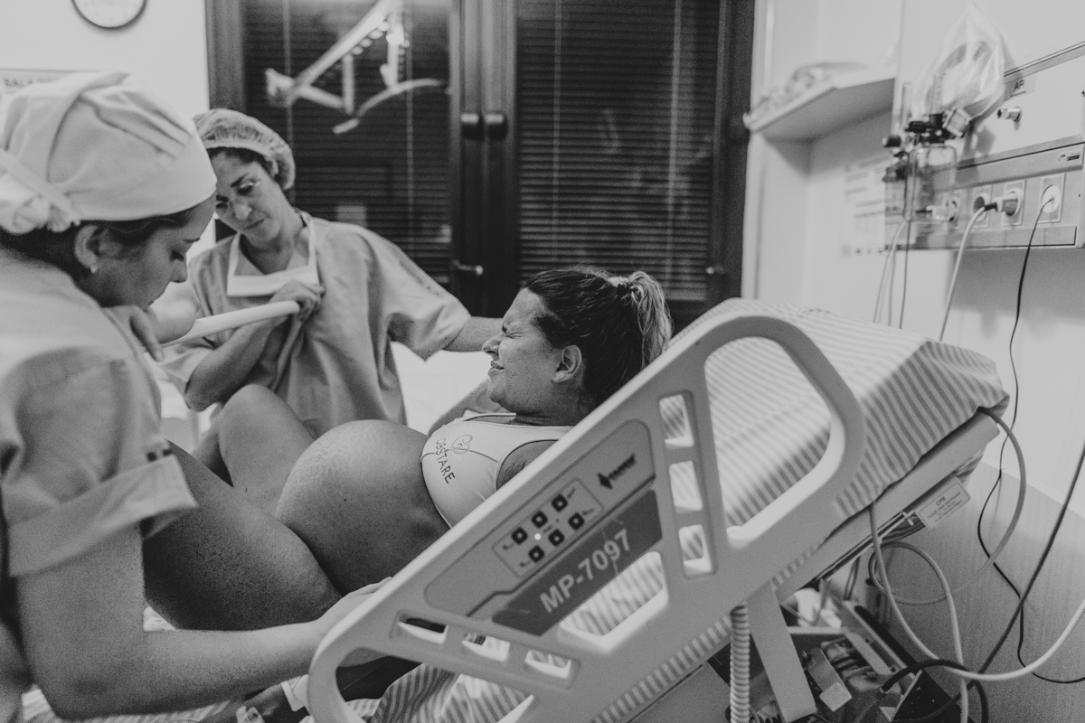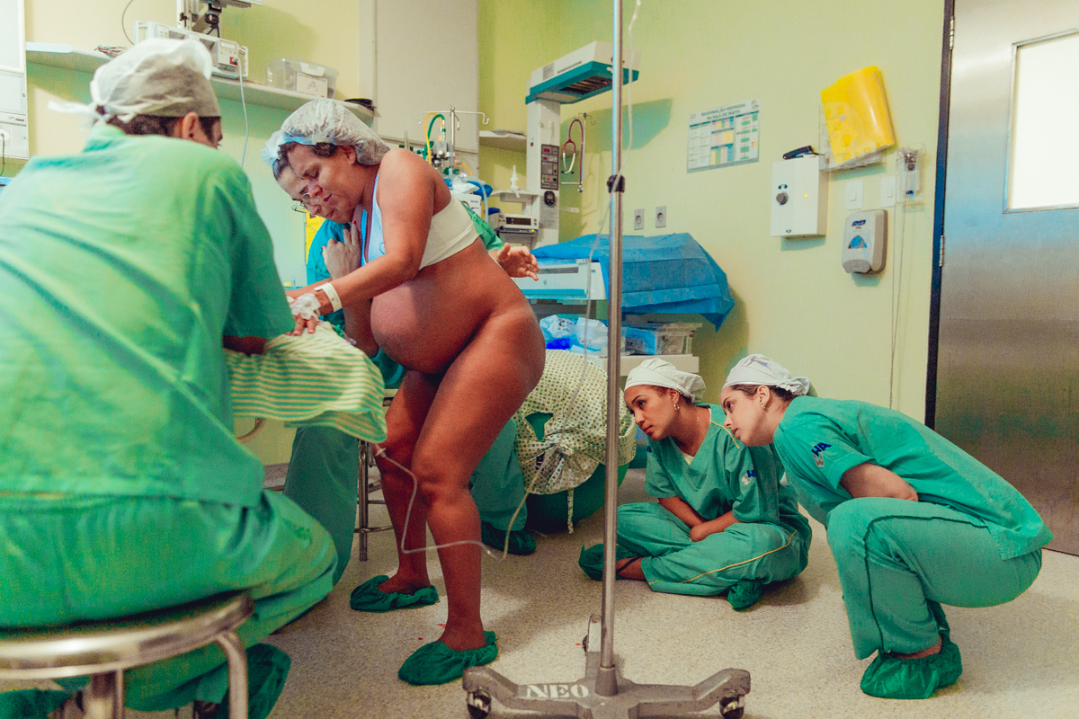 pai troca carinho com gestante durante parto humanizado em salvador