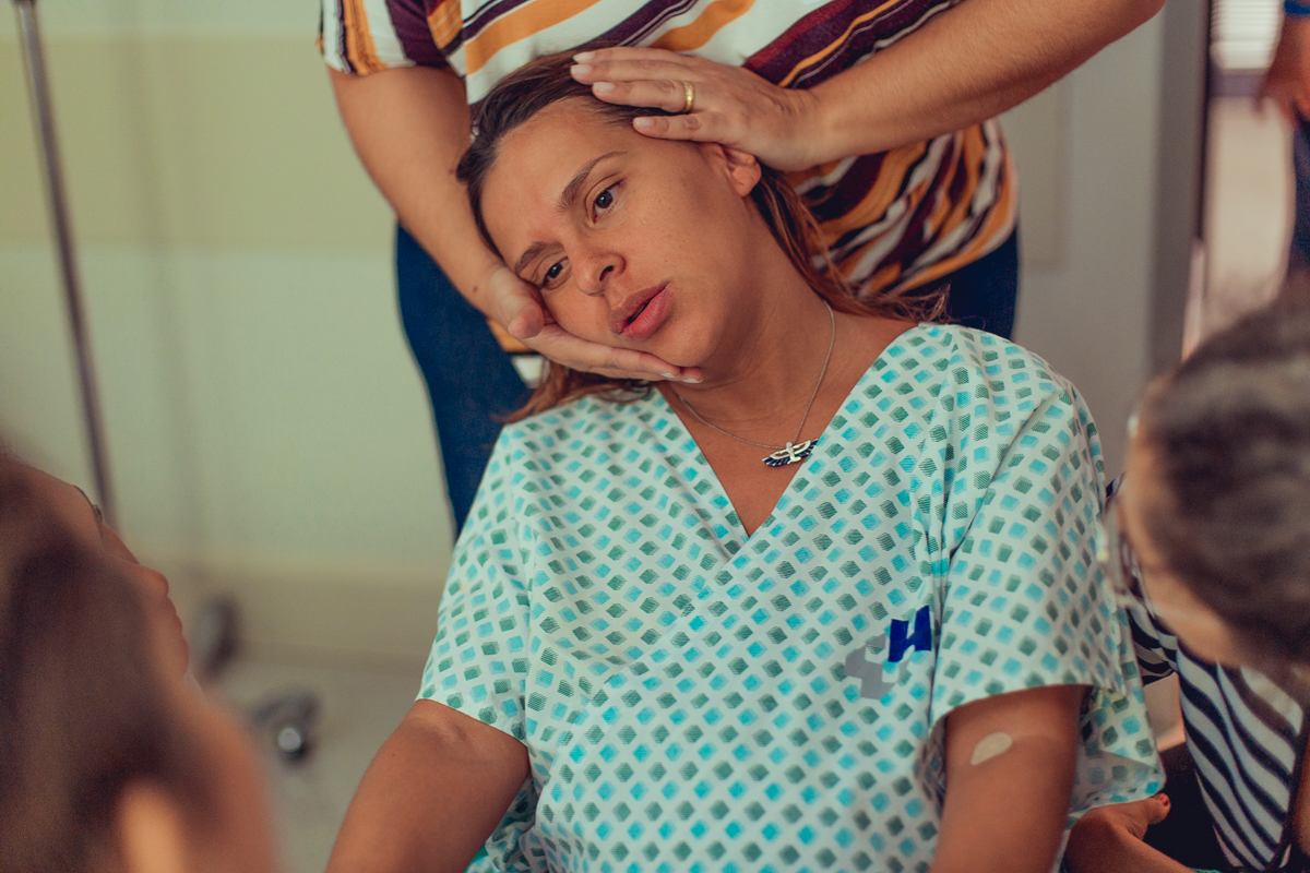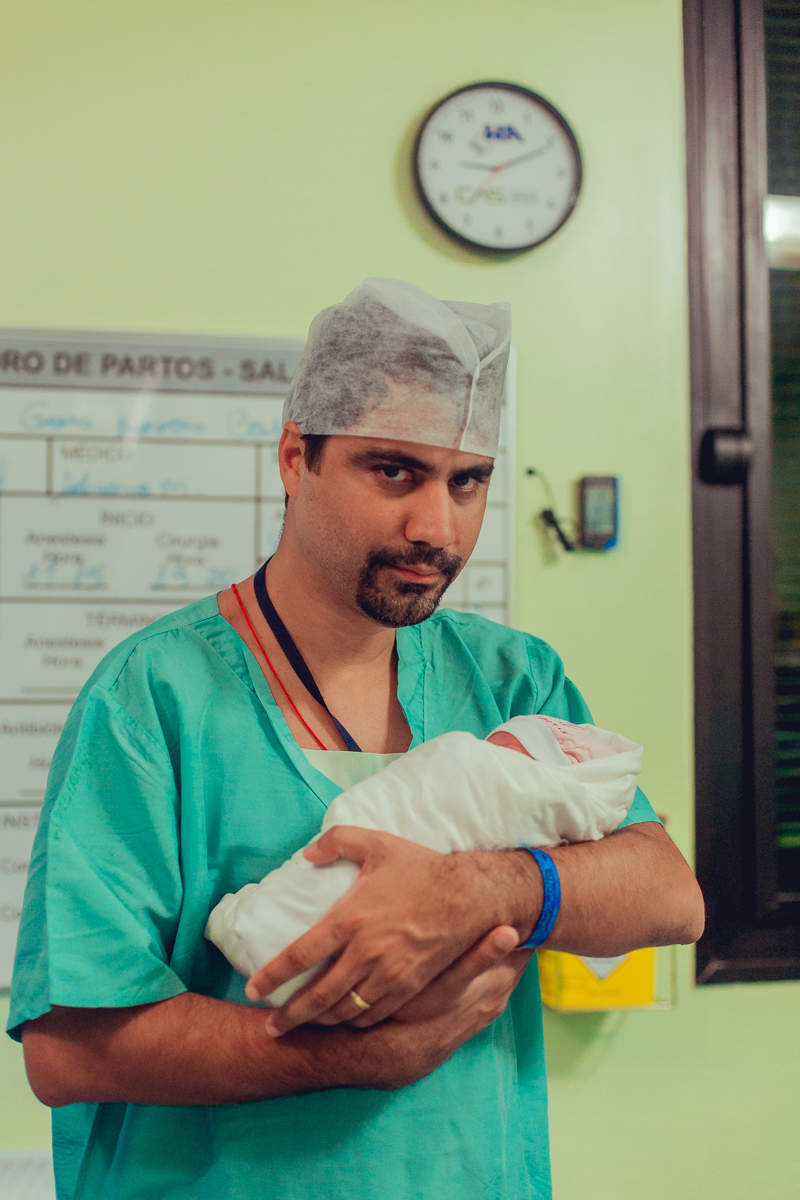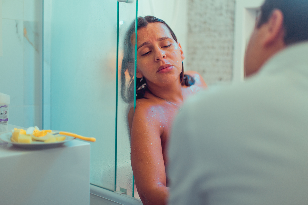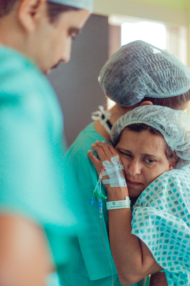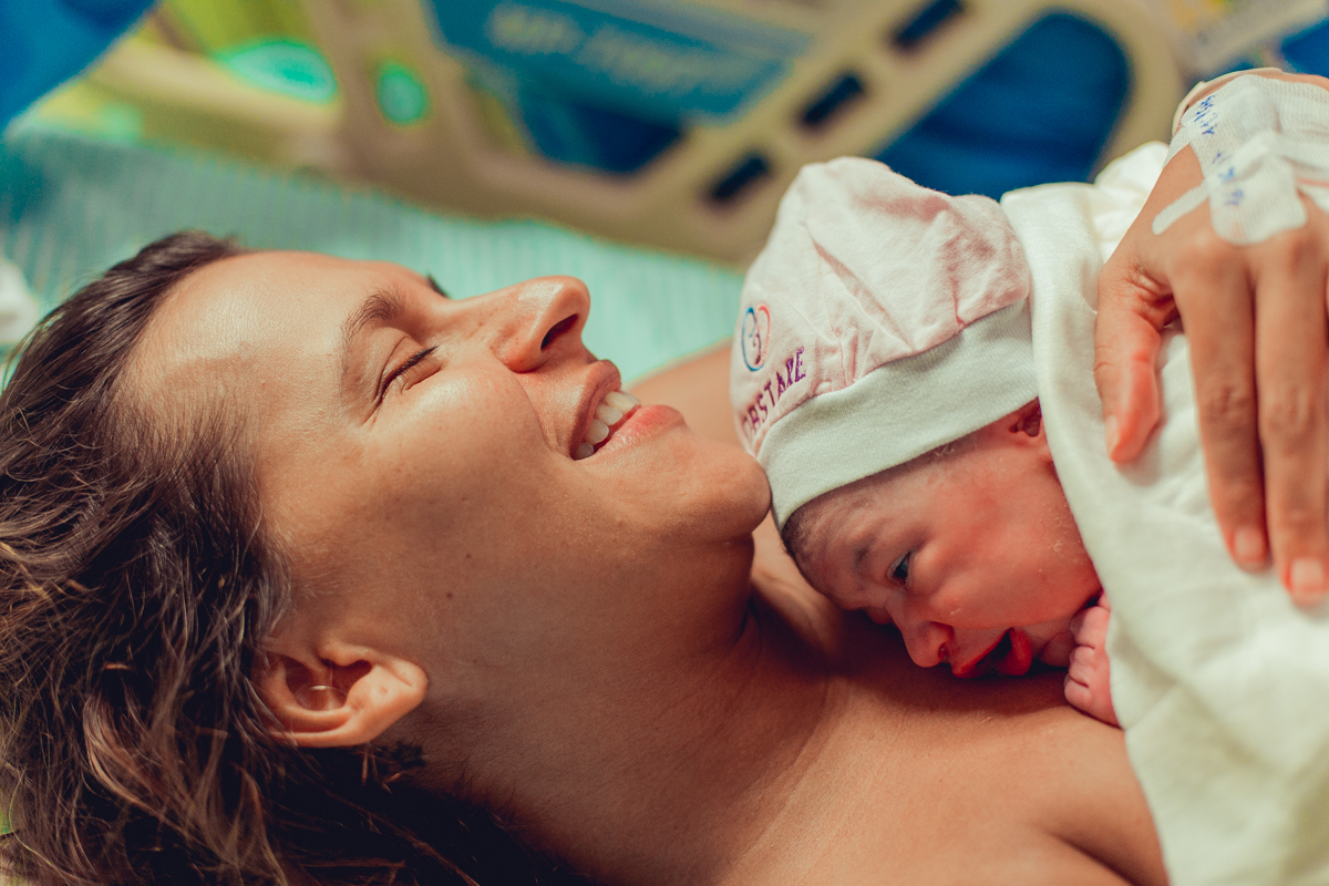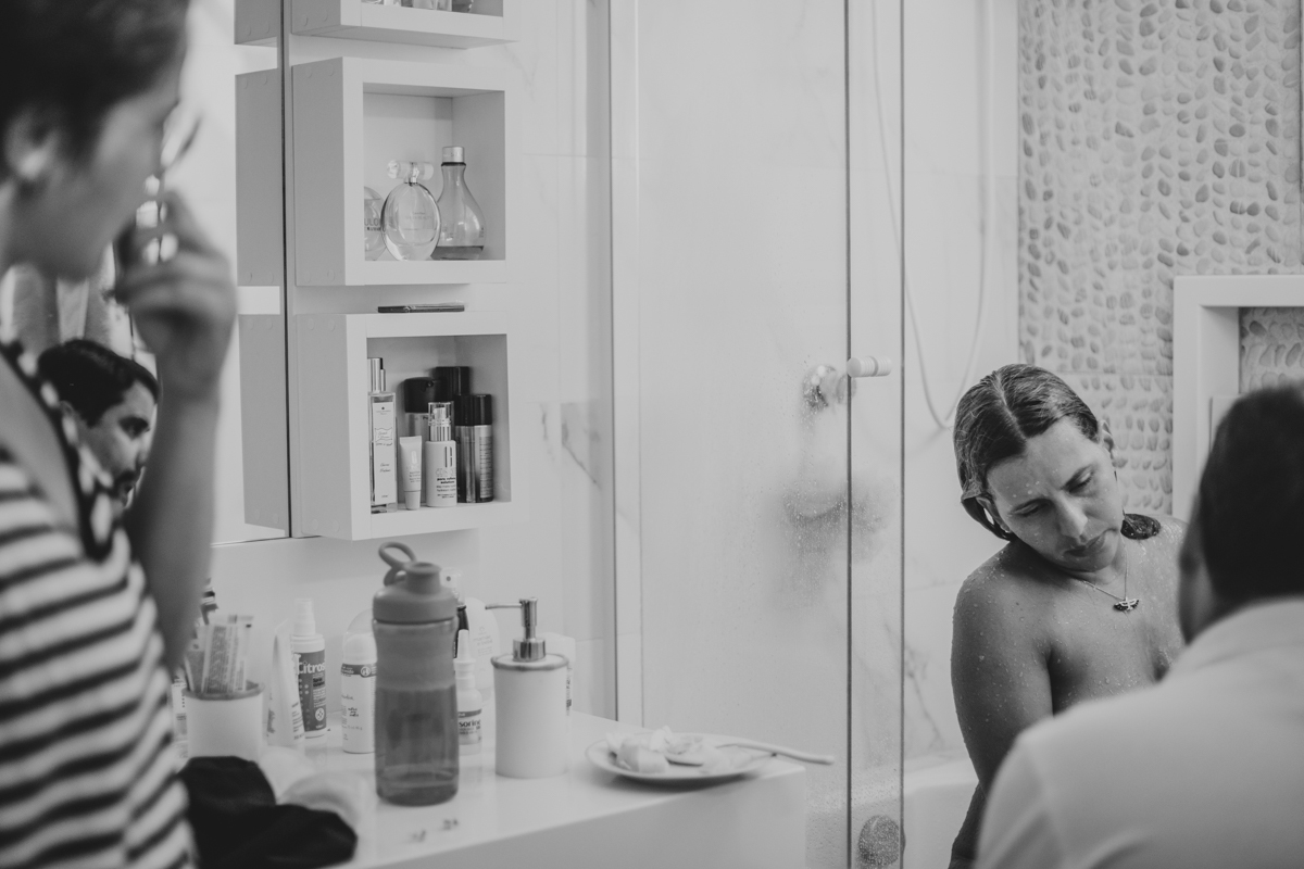 pai troca carinho com gestante durante parto humanizado em salvador