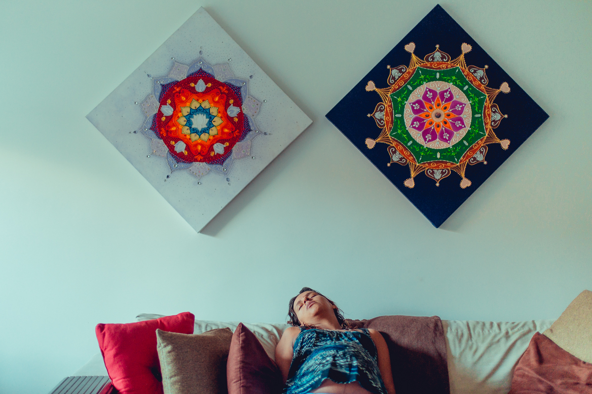 pai dando suporte fisico e emocional para gestante em trabalho de parto domiciliar