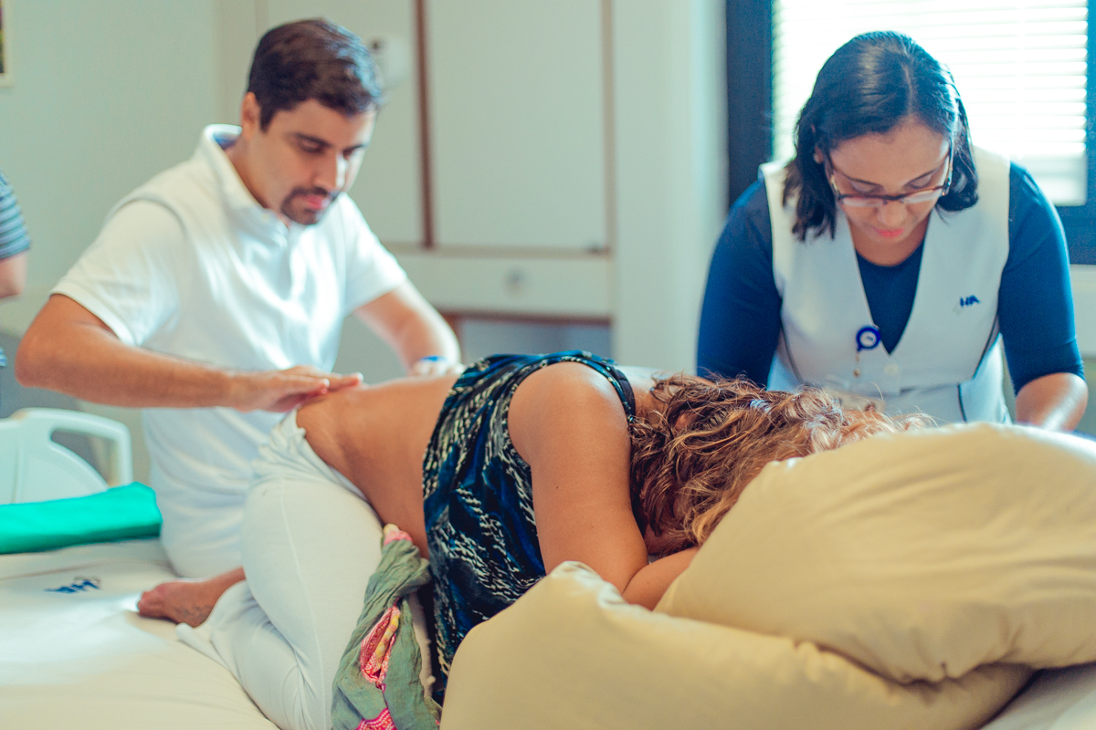 doula massageando gestante durante trabalho de parto em salvador