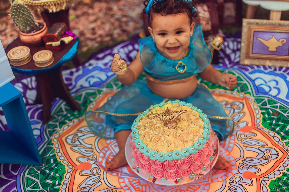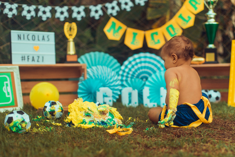 👉 Se você sonha com um tema específico e quer aquele efeito clássico e divertido do bolo, vá de smash the cake.